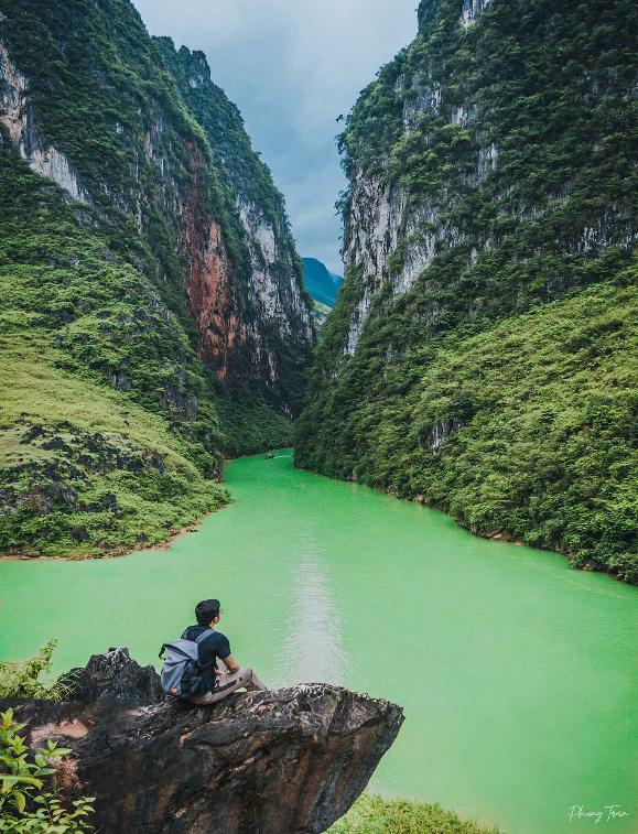Từ trên đỉnh đèo, phóng tầm mắt sẽ thấy sông Nho Quế như dải lụa màu xanh ngọc bích êm đềm chạy ngang qua hẻm Tu Sản – hẻm vực sâu nhất Đông Nam Á, hòa cùng với mây trời kỳ vĩ như tiên cảnh. Dạo chơi trên sông Nho Quế, thuyền lướt tới đâu là cảm thấy hơi mát lạnh từ đá, tiếng nước chảy róc rách, những âm thanh thì thầm của gió, thuyền bé tí tẹo thu nhỏ lại giữa hai vách đá cao chót vót,… Nơi đây vô cùng độc đáo, hiểm trở nhưng tuyệt đẹp, đáng để bạn chinh phục trong hành trình đến với mảnh đất Hà Giang xinh đẹp.